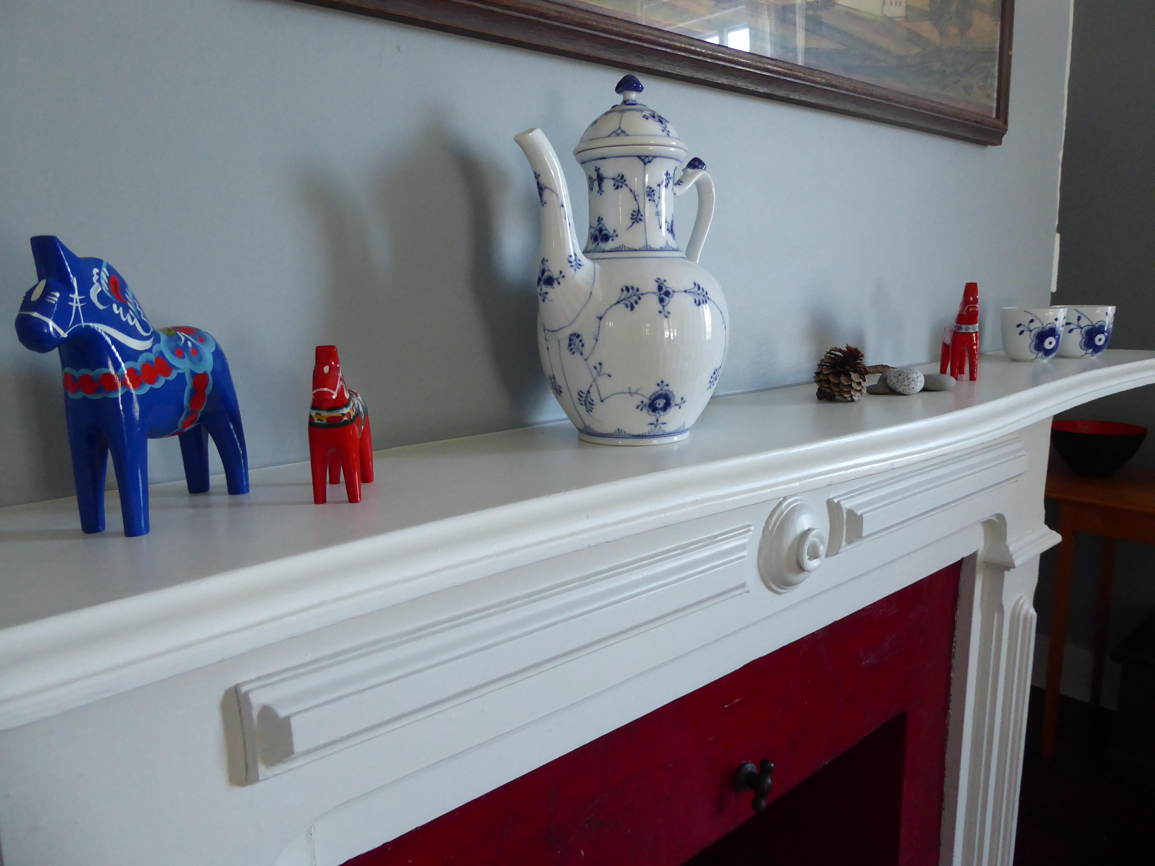 My “Hygge Hylde” with Dala horses and Royal Copenhagen coffee pot